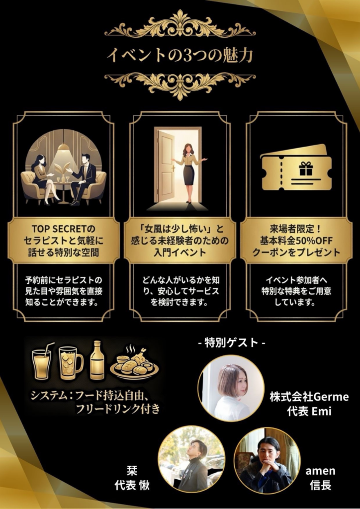 女性用風俗店TOP SECRETプロデュースによる特別なイベント開催のお知らせです🗣️